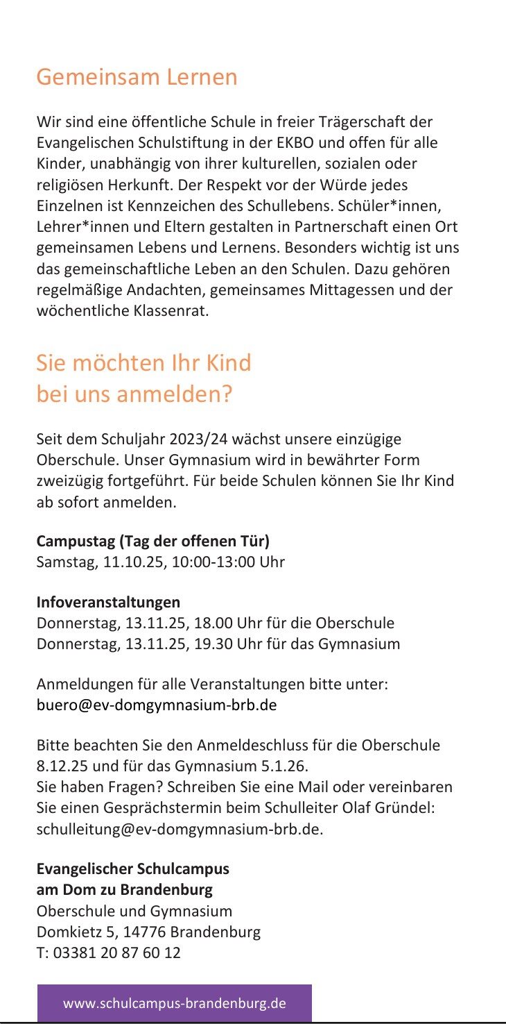 Evangelische Oberschule und zwei neue Gymnasialklassen starten in Frankfurt (Oder) Vom9. September 2025