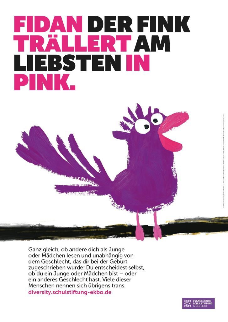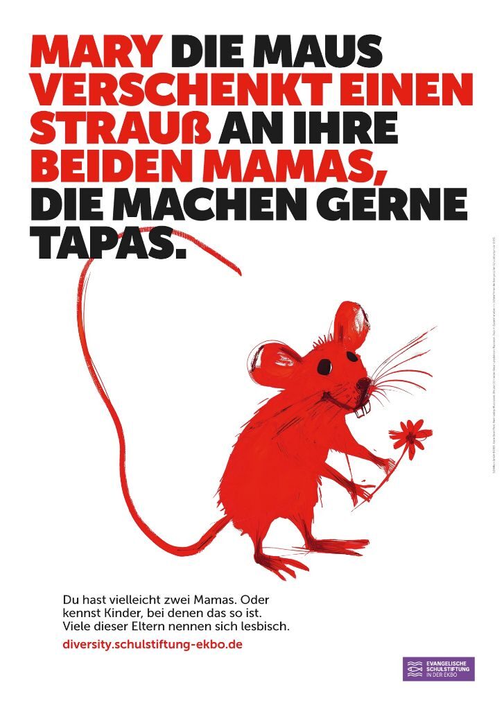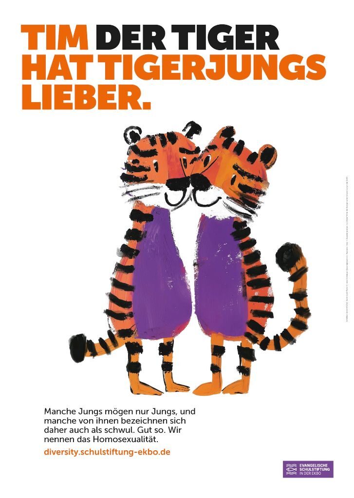 „Tim der Tiger hat Tigerjungs lieber“ oder „Gaia die Gazelle bereichert uns mit ihrer Schnelle und so viel mehr, denn sie kommt von sehr weit her“, solche und ähnliche Reime sind auf den acht Plakaten der Vielfalts-Kampagne der Evangelischen Schulstiftung in der EKBO zu lesen. Das Besondere: sie richten sich an Schüler*innen im Grundschulalter. Unter den einprägsamen Reimen folgt daher eine kindgerechte Zeichnung und eine Erklärung, um welches Vielfaltsthema es sich handelt.