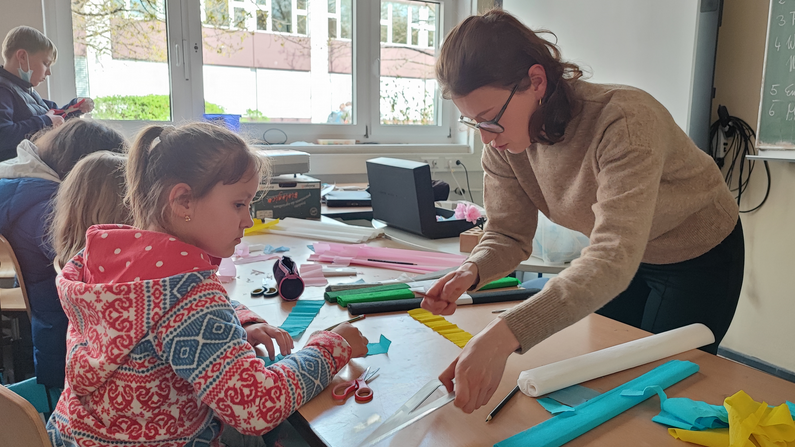 Mich interessiert vor allem die Kommunikation mit ukrainischen Kindern. Sie durchlaufen den Prozess der Integration, was nicht für jede und jeden einfach ist. Durch die Kunst können sie sich manchmal besser ausdrücken als in einem Gespräch. Außerdem arbeiten die Kinder in einer Gruppe, in der sie auch miteinander kommunizieren können. Am Ende haben sie auch was Schönes in der Hand, was sie den Eltern stolz präsentieren können. Das, stärkt das Vertrauen der Kinder in sich selbst.